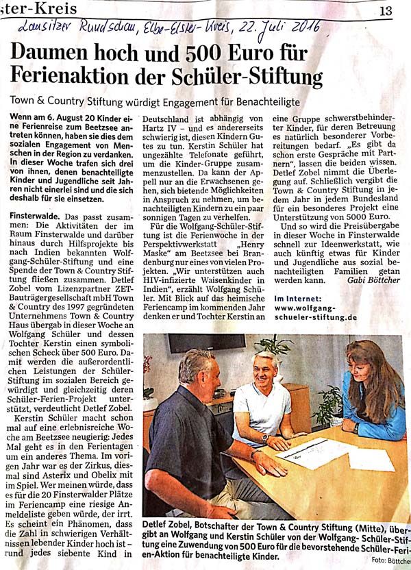 We thank all individuals and companies for their generous donations. Their commitment makes it possible to put the plans into practice and to bring the projects to a successful conclusion.